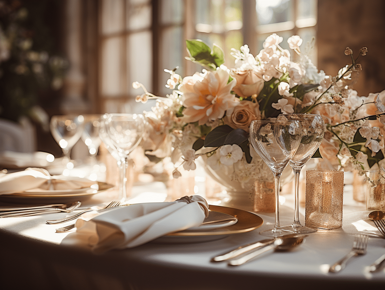 Au-delà des éléments traditionnels comme les centres de table, pensez aux détails qui peuvent faire la différence : des nappes de qualité, des chaises décorées, un éclairage tamisé ou encore des éléments décoratifs suspendus. Sans oublier les espaces dédiés comme un coin photo avec des accessoires amusants pour des souvenirs mémorables.