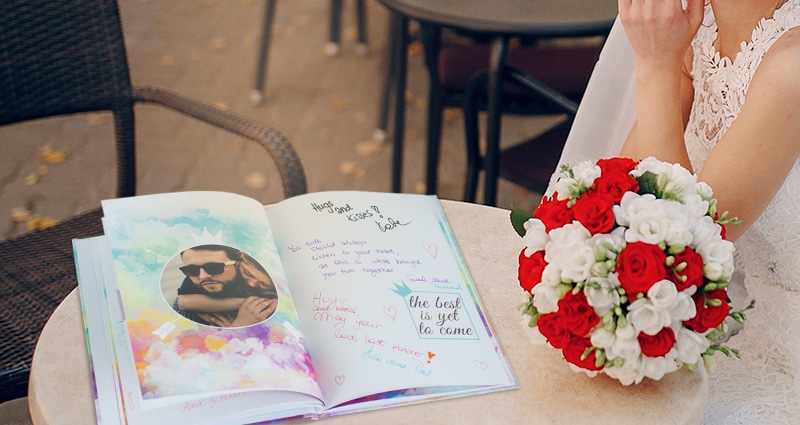 Pensez à ajouter quelques pages supplémentaires blanches dans le livre pour permettre aux invités éventuels d’avoir assez d’espace pour écrire leur message sans limite aucune !